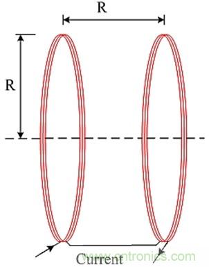 圖1:單軸高頻亥姆霍茲線圈由一對半徑為R、間距等于R的兩個線圈組成。