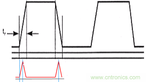 邏輯器件是一種騷擾發(fā)射較強(qiáng)的最常見的寬帶騷擾源。時(shí)鐘波形的上升時(shí)間tr 越短,對(duì)應(yīng)邏輯脈沖所占帶寬越寬