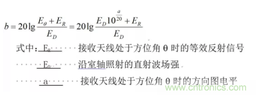 將接收天線轉(zhuǎn)到比最大電平低a(dB)的方位角q時,則所接收的直射信號Eq=ED10a/20。當(dāng)反射信號與直射信號同相時合成場最大,這時以b表示: