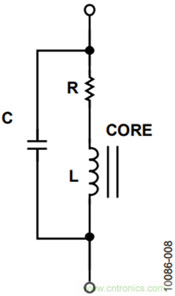 除電感外,還有串聯(lián)電阻(DCR)和并聯(lián)電容。DCR主要是由線圈電阻引起的,對電感的功率損耗計算很重要。并聯(lián)電容與電感一起可能引起電感自諧振。自諧振頻率可以通過下式計算: