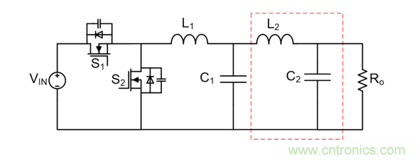 若選擇合適的電容仍然無(wú)法滿足紋波的要求,可以增加第二級(jí)LC 濾波器來(lái)進(jìn)一步降低輸出電壓紋波, 如圖8所示。