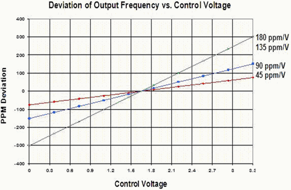 圖4:Si550控制電壓的線性特性。