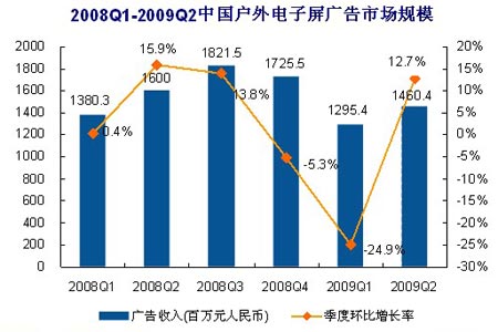 易觀國(guó)際分析認(rèn)為,由于部分細(xì)分市場(chǎng)尚未走出宏觀經(jīng)濟(jì)下滑的困境,加上整體市場(chǎng)的反彈并不強(qiáng)勁,因此本季度整體市場(chǎng)規(guī)模未達(dá)到去年同期的水平,預(yù)計(jì)目前中國(guó)宏觀經(jīng)濟(jì)的好轉(zhuǎn)對(duì)戶外電子屏廣告市場(chǎng)的促進(jìn)作用將在下半年顯現(xiàn)。