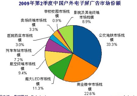 - 本季度公交地鐵市場(chǎng)占戶外電子屏廣告市場(chǎng)33.3%