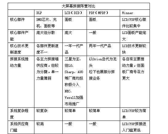 當(dāng)然,正如前文所述,以DLP為代表的背投影拼接甚至MPDP也都在不斷改進(jìn)和發(fā)展中,大屏幕拼接市場(chǎng)競(jìng)爭(zhēng)格局雖然將隨LCD的興起而改變,但多元化依然是未來(lái)不變的主題。