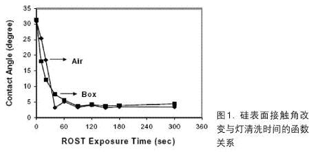 半導體清洗技術(shù)的關(guān)注點隨時間而改變。早年關(guān)注的是大微粒和金屬污染物,實際上,當時半導體器件故障常常是由于襯底晶圓中的高缺陷密度引起,而不是表面污染引起的。隨著微粒和金屬污染的數(shù)量級逐漸減小,以及對這方面的污染控制非常有效,現(xiàn)在更多注意的是有機污染和表面狀態(tài)相關(guān)問題。如圖1指出的,用簡單的燈清洗法可以把有機污染從Si表面除去。此外,應特別注意溶解在水內(nèi)和氣相的臭氧在控制有機污染中的作用。另一問題是對清洗方法目標監(jiān)察的多樣性,因為FEOL和BEOL清洗要求不同,后者關(guān)注的是CMP后清洗。