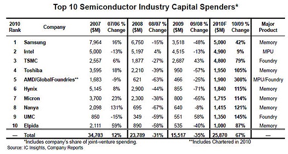Samsung很可能成為2010年支出額最大的公司。“盡管Samsung發(fā)布了保守的資本支出計劃,在存儲芯片產(chǎn)能上投資47億美元,但該公司今年資本支出仍可能超過60億美元。