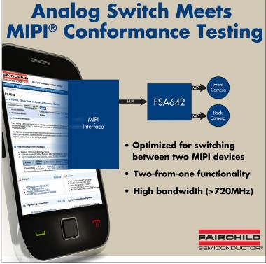 飛兆半導體公司(FaIRchild SemicONductor)開發(fā)了一款低功率、雙數(shù)據(jù)對2:1、高速MIPI開關產(chǎn)品FSA642。該器件是飛兆半導體MIPI兼容開關系列的新產(chǎn)品,是目前唯一通過MIPI UNH-IOL的700Mbps數(shù)據(jù)率互用性測試的MIPI開關。