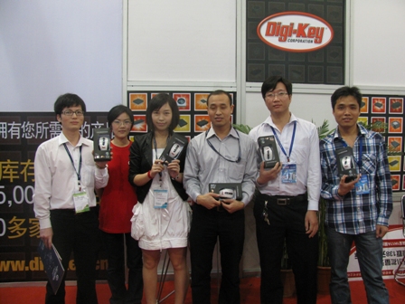 目錄分銷知識講座場場人氣爆滿,每天都有近千位觀眾積極搶答講座中提出的問題,參與現(xiàn)場的抽獎活動,并通過唱歌、簽名等形式表達(dá)對Digi-Key的認(rèn)可與祝福。其中200多名觀眾抽得價值138元的無線鼠標(biāo)大獎,3000多名觀眾獲得了LED 手電筒、七彩小鬧鐘以及四色彩筆等小禮物。以下是現(xiàn)場發(fā)回來的一些照片,讓我們一起來感受現(xiàn)場的火爆氣氛!
