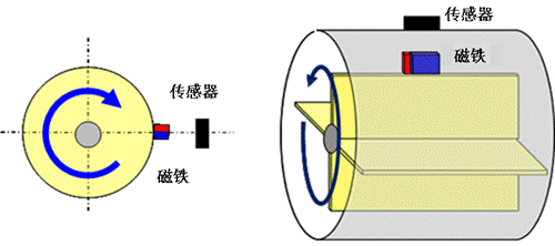 通過(guò)讓傳感器靠近和遠(yuǎn)離磁鐵來(lái)控制電路的方法,較為普遍的就是使用在蓋或門的開關(guān)部分,比較容易想象。若在磁鐵上安裝齒輪或羽毛,還能夠作為液體或氣體的流量計(jì)使用(如圖6)。另外還可以用來(lái)檢測(cè)可脫卸的零件在使用時(shí)的安裝位置是否正確。