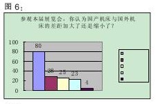 在本屆展會(huì)上,“數(shù)控機(jī)床與基礎(chǔ)制造裝備重大專項(xiàng)(04專項(xiàng))圖片展”吸引了眾多觀眾的目光。國家設(shè)置“04專項(xiàng)”,是為了逐步提高我國高檔數(shù)控機(jī)床與基礎(chǔ)制造裝備的自主開發(fā)能力,滿足國內(nèi)主要行業(yè)對(duì)制造裝的基本需求。在對(duì)“高檔數(shù)控機(jī)床與基礎(chǔ)制造裝備”重大專項(xiàng)的評(píng)價(jià)調(diào)查中,認(rèn)為“有很大作用”的達(dá)69.4%,“作用一般”的為26.9%,“沒起什么作用”的為3.8%(詳見圖3)。這表明,國家對(duì)數(shù)控機(jī)床行業(yè)的政策支持,得到了大多數(shù)行業(yè)人士的認(rèn)可。