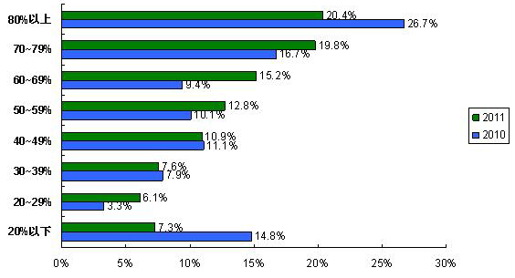 供求雙方把伙伴關(guān)系建立在專業(yè)評估的基礎(chǔ)上,通過系統(tǒng)流程可以有效減少供應(yīng)商認(rèn)證和引入過程中的不合理操作、暗箱操作、防范采購風(fēng)險(xiǎn)、提高采購效率。在供應(yīng)商認(rèn)證與引入過程中,沒有建立和認(rèn)為沒必要建立系統(tǒng)流程的受訪者比例由2010調(diào)查的25%(22.1%+2.9%)降至2011調(diào)查的15.2%(13.4%+1.8%),已經(jīng)建立流程并且得到很好實(shí)施的比例也由2010調(diào)查的53.9%上升至2011調(diào)查的58.4%。