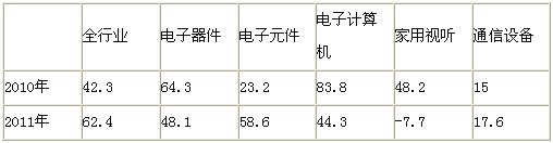 前三季度,電子元件、器件和信息機(jī)電行業(yè)分別完成投資1133、1615和1495億元,同比增長58.6%、48.1%和120.2%,三個(gè)領(lǐng)域投資占全行業(yè)的65%,比重比去年提高3個(gè)百分點(diǎn),對全行業(yè)投資增長的貢獻(xiàn)率分別達(dá)到17%、21%和33%。整機(jī)行業(yè)投資增長放緩,其中視聽行業(yè)完成投資89.5億元,同比下降7.7%, 比重(1.4%)下降1個(gè)百分點(diǎn);通信設(shè)備行業(yè)完成投資360億元,同比增長17.6%,比重(5.5%)下降2.1個(gè)百分點(diǎn);計(jì)算機(jī)行業(yè)在平板電腦等新產(chǎn)品帶動下,在整機(jī)行業(yè)中增長相對較快,同比增長44.3%,但仍低于全行業(yè)18.1個(gè)百分點(diǎn),其中9月份投資下降20.1%。