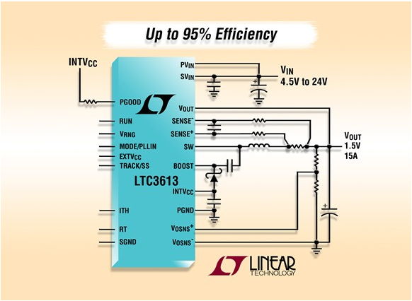LTC3613:Linear推出24V、15A單片同步降壓型穩(wěn)壓器