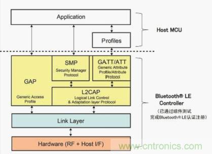 圖2:主機和Bluetooth® LE控制器堆棧結(jié)構