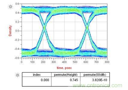 上圖是一個(gè)電容,而下圖接了兩個(gè)。明顯眼圖margin變小了,這也是由于多了一個(gè)阻抗不連續(xù)點(diǎn),引起了不必要的反射。
