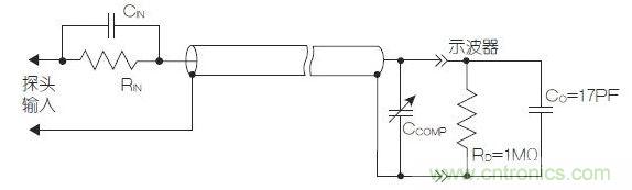 最常見的探頭類型是高阻抗無源探頭。圖1是其簡化示意圖。該探頭使用經(jīng)補償?shù)姆謮浩?電阻和電容匹配的分壓器)以驅(qū)動探頭線纜和示波器輸入電容。這些探頭有500MHz額定帶寬,但你應考慮由輸入電容所帶來的限制。