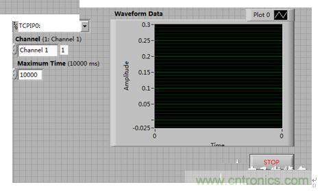 啟動LabVIEW創(chuàng)建一個新的VI文件。這里以從示波器讀取數(shù)據(jù),并顯示在波形控件上為例。設(shè)計的VI前面板為如圖4所示。