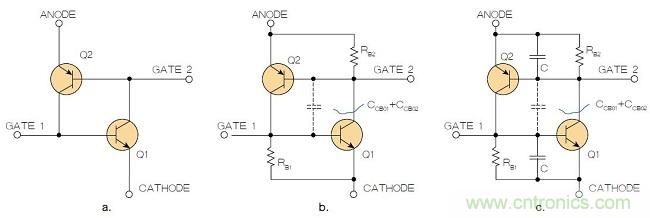 SCR是一種具有如圖1a所示的晶體管等效電路的四層半導(dǎo)體器件。