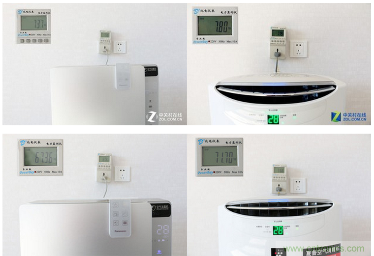 最強(qiáng)風(fēng)速、睡眠模式下的功耗實測數(shù)據(jù)(左松下 右夏普)