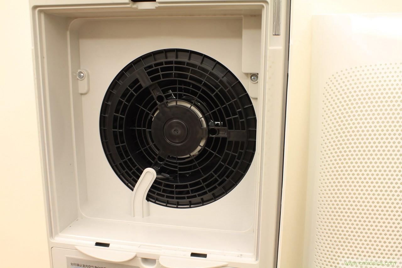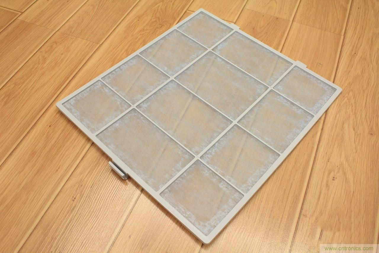 取下前面板后,AX70J7000WT的濾網就出現在面前??梢钥吹竭@款凈化器的濾網成兩段式分布,上下完全對稱。三星聲稱這款凈化器的濾芯包含“四重過濾結構”,即:預過濾、油煙過濾、活性炭濾芯和HEPA過濾四層結構。
