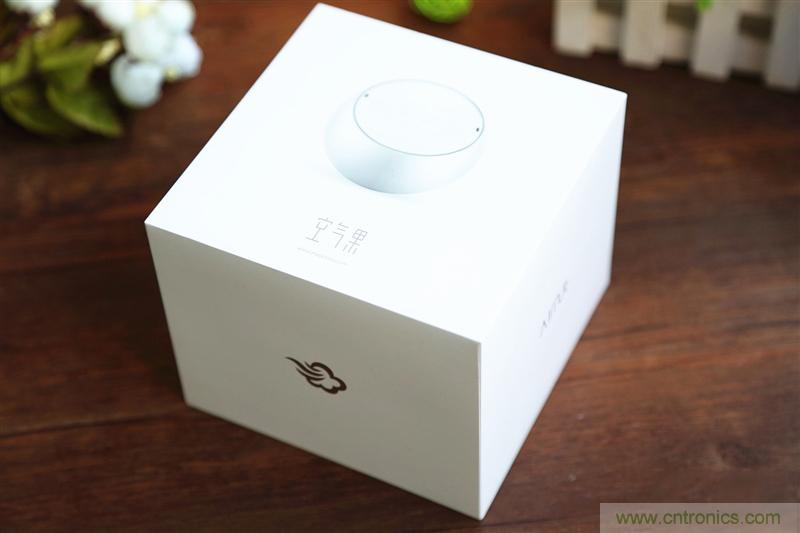 空氣果1S采用了素雅的白色包裝盒,頂部直接印刷了產(chǎn)品外觀圖,盒子側(cè)面還有墨跡天氣的Logo。
