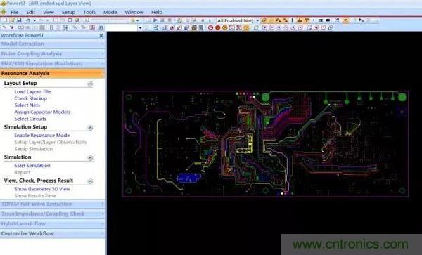 Cadence Sigrity采用多種混合算法,包括電磁場(EM)求解器,傳輸線(TLM)求解器,電路(SPICE)求解器, 如板間主電磁場采用FEM有限元法(POWERSI)或FDTD時域有限差分法(SPEED2000),傳輸線采用矩量法,非理想回路和過孔采用局部三維等效法,板邊輻射采用邊界元法等。