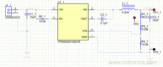 步驟1:在AlTIum中建立一個(gè)簡單的降壓轉(zhuǎn)換器原理圖(圖1)。