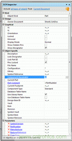 Altium將突出顯示原理圖上的所有組件,并打開SCH Inspector窗口。