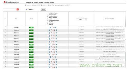 圖1:WEBENCH負(fù)載開(kāi)關(guān)設(shè)備列表