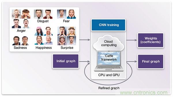 訓練階段(見圖3)需要一種深度學習架構(gòu)——例如,Caffe或TensorFlow——它采用中央處理器(CPU)和繪圖處理器(GPU)進行訓練計算,并提供架構(gòu)使用知識。這些架構(gòu)通常提供可用作起點的CNN圖形范例。深度學習架構(gòu)可對圖形進行微調(diào)。為了實現(xiàn)盡可能最佳的精確度,可以增加、移除或修改分層。