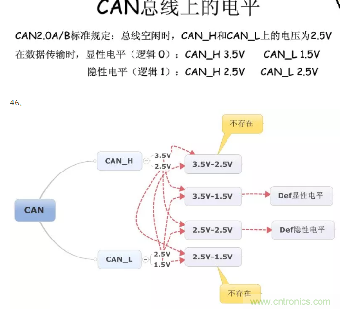 45、CAN協(xié)議有兩個標準,ISO11898(針對125kbps~1Mbps的高速速率)和ISO11519-2(125kbps以下的低速速率)