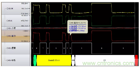 圖6波特率異常(位寬度從2us突然變成1.6us),導致位錯誤引起錯誤幀。位寬的不穩(wěn)定是波特率不穩(wěn)定導致的,最有可能的原因是晶振問題,建議更換晶振測試。