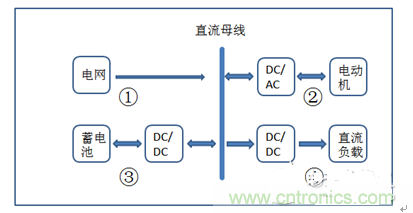 下面是純電動汽車測試電機時的整個能量運行單元。靜止時的充能過程:能量單向傳輸,通過電網(wǎng)——直流母線——蓄電池;在運動狀態(tài)時:能量雙向傳輸由蓄電池——直流母線——負載電機。這時候通過直流母線蓄電池的電能釋放出來提供給負載做功,同時有電能回饋的時候會通過直流母線將能量傳輸給電網(wǎng),更高效的利用了能源。