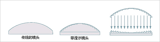 傳統(tǒng)的鏡頭與菲涅爾鏡頭的區(qū)別如下圖所示: