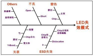 LED失效原因魚骨圖