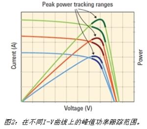 如果目標(biāo)是為了驗(yàn)證峰值功率追蹤電路的性能,開發(fā)出能在不同環(huán)境條件下始終工作在I-V曲線最大功率點(diǎn)上的太陽(yáng)能逆變器,在電路的設(shè)計(jì)和開發(fā)中就必須考慮峰值功率跟蹤范圍和跟蹤頻率。峰值功率跟蹤范圍是I-V曲線最大峰值功率點(diǎn)附近的一段區(qū)間,這也是逆變器峰值功率跟蹤電路算法的工作區(qū)間,跟蹤頻率則是工作區(qū)間內(nèi)曲線的擺動(dòng)速率,如圖2所示。為確保逆變器在模塊I-V曲線變化時(shí)始終能夠找到最大峰值功率點(diǎn),它必須具有足夠?qū)挼母櫡秶妥銐蚋叩母欘l率。為驗(yàn)證設(shè)計(jì)的有效性,需要根據(jù)精確復(fù)現(xiàn)太陽(yáng)能電池板的I-V曲線來驗(yàn)證在不同曲線下逆變器能否穩(wěn)定地工作在峰值功率點(diǎn)附近。