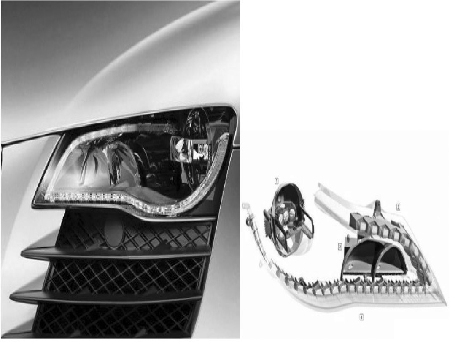 因此,為提高行車安全,越來越多的新技術(shù)被逐漸應(yīng)用到汽車燈具中,如側(cè)轉(zhuǎn)向燈的光纖傳導(dǎo)技術(shù)、前照燈AFS 技術(shù)等。當(dāng)然,這其中也包括發(fā)光二極管技術(shù)( Light Emitting Diode,簡(jiǎn)稱LED) 在汽車燈具尤其是在汽車前照燈上的應(yīng)用。近幾年的汽車設(shè)計(jì)中,LED 車燈的使用越來越多,給汽車外觀增加現(xiàn)代感的同時(shí),也為更多人所熟悉,并引領(lǐng)當(dāng)今汽車燈具發(fā)展的潮流和方向。