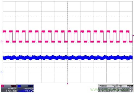 輸出電壓上紋波幅度過大還會(huì)在輸出電容上產(chǎn)生刺耳的嘯叫聲。這是由于輸出MLCC電容的壓電效應(yīng)產(chǎn)生的振動(dòng)而引起的。一般紋波幅度超過0.5V就能聽到明顯的嘯叫聲。提高調(diào)光頻率是一種解決辦法,但提高調(diào)光頻率會(huì)影響PWM調(diào)光的調(diào)光線性度,甚至?xí)拐{(diào)光功能失效,而且也沒有從根本上解決問題。