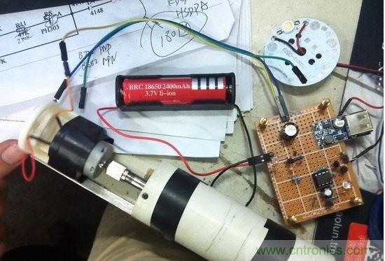 在沒裝電池情況下,電機(jī)轉(zhuǎn)動(dòng)燈會(huì)亮,電機(jī)停燈滅。