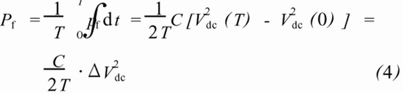 這里C為直流側(cè)電容。由式(3)可計(jì)算有源濾波器傳輸?shù)乃矔r(shí)有功功率平均值Pf: