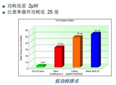 Actel技術(shù)支持培訓(xùn)經(jīng)理戴夢麟則介紹了低功耗Flash FPGA在便攜式醫(yī)療設(shè)備上的應(yīng)用,他指出Flash工藝具備低功耗優(yōu)勢、上電即行、單芯片帶來的總成本優(yōu)勢、天然的安全優(yōu)勢和可靠性優(yōu)勢等特點(diǎn),所以非常適合便攜式醫(yī)療電子產(chǎn)品應(yīng)用。他特別將IGLOO Nano 系列 FPGA的功耗和其他廠商的FPGA產(chǎn)品進(jìn)行了比較。
