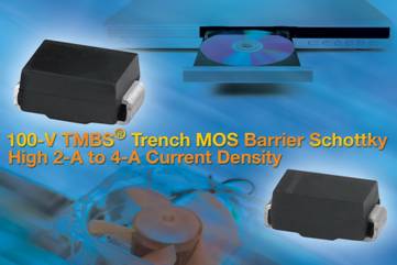 Vishay Intertechnology宣布推出電流密度高達2A~4A、采用低尺寸表面貼裝SMA和SMB封裝的新款100V TMBS Trench MOS勢壘肖特基整流器。