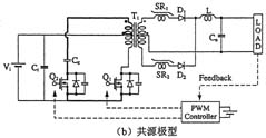 另外,如圖3所示,在采用絕緣變壓器的場(chǎng)合,研究人員還提出了將有源鉗位電路嵌入推挽式轉(zhuǎn)換器中的方案,可在采用48V輸入和1.2V/70A輸出的條件下實(shí)現(xiàn)高達(dá)91%的效率。上面講到的幾種電路方式基本上都是一段式結(jié)構(gòu),最近,出于進(jìn)一步提高效率的考慮,人們正在加緊研發(fā)兩段式結(jié)構(gòu)的轉(zhuǎn)換器。就普通的轉(zhuǎn)換器而言,采用兩段式結(jié)構(gòu)將導(dǎo)致效率下降是人所共知的常識(shí),然而,在低電壓大電流轉(zhuǎn)換器中,對(duì)輸出進(jìn)行同步整流是很普遍的做法,因此,如何實(shí)現(xiàn)同步整流操作的高效化便成為了關(guān)鍵所在。