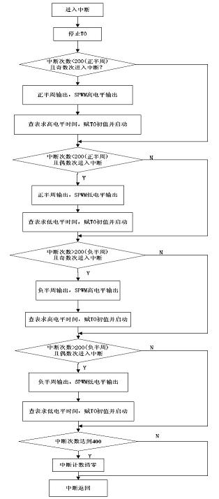 本設(shè)計采用定時/計數(shù)器0 來完成SPWM 波形的產(chǎn)生,工作模式設(shè)定為模式1。軟件流程圖如圖8所示。