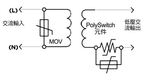 在照明系統(tǒng)中采用第二類功率源可成為降低成本、提高彈性的重要因素之一。固有的有限功率源,如變壓器、電源供應器或電池等,可以包含保護組件,只要不依靠它們限制第二類功率源的輸出即可。非固有型的有限功率源,按照定義,具有一個分立保護組件,當電流和能量輸出達到預定值時它會自動中斷輸出,各種電路保護組件都有助于提供LED照明應用第二類功率源的安全操作。圖4表示了一種協(xié)同保護策略的工作原理,它在交流輸入上采用了一個MOV,在輸出電路分支上采用了一個PolySwitch組件,可以幫助廠商滿足UL 1310第35.1小節(jié)針對開關和控制裝置的過載試驗要求。