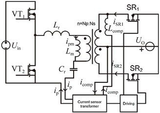 由于LLC諧振變流器的勵磁電流較大,導(dǎo)致一次側(cè)電流與二次側(cè)電流之間存在相位差,因此,可以采用補償電感L comp對相位進行補償,而有文獻則采用輔助變壓器對一次側(cè)電流進行采樣。這兩種驅(qū)動方案都可以解決相位差問題,而且沒有增加大型的磁性元件,有利于提高效率和功率密度。