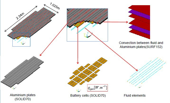 左邊的兩個模型是一維的模型,和流體模型。為此該公司做了一個很大的鋁板,然后在上頭貼了99塊聚合物電池: