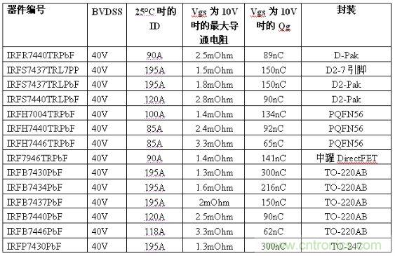 圖題:IR 推出StrongIRFET功率MOSFET系列