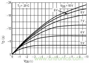 ID.P-MOSFET的輸出特性(以Si9933DY為例)如圖4所示。在-VGS=2.1V、VDS>0.5V時,其輸出特性幾乎是一水平直線;在不同的VDS時,ID是恒流。從圖4也可以看出,在-VGS增加時,ID也相應(yīng)增加。